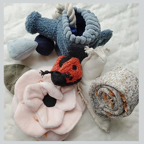 Dieses Set bietet 4 Spielobjekte, die deinen Hund mit einer Vielzahl von unterhaltsamen Elementen, Geräuschen, Schnüffeltaschen und Texturen stimulieren sollen!