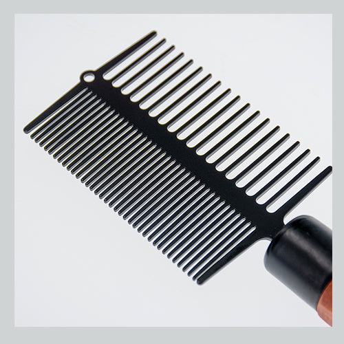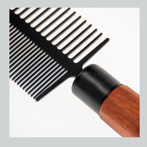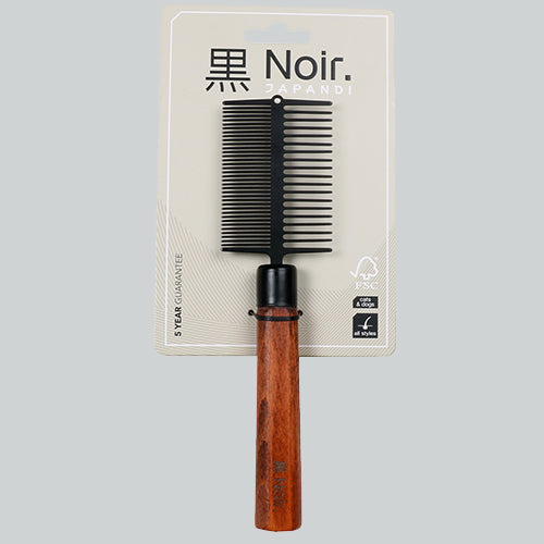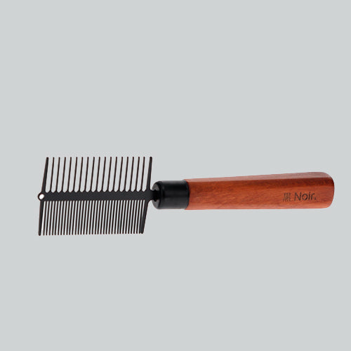 Dieser doppelseitige Kamm von Noir Japandi verfügt über 17 Zähne auf einer Seite und 35 auf der anderen und ist das ganze Jahr über ideal für eine gründliche Pflege geeignet.