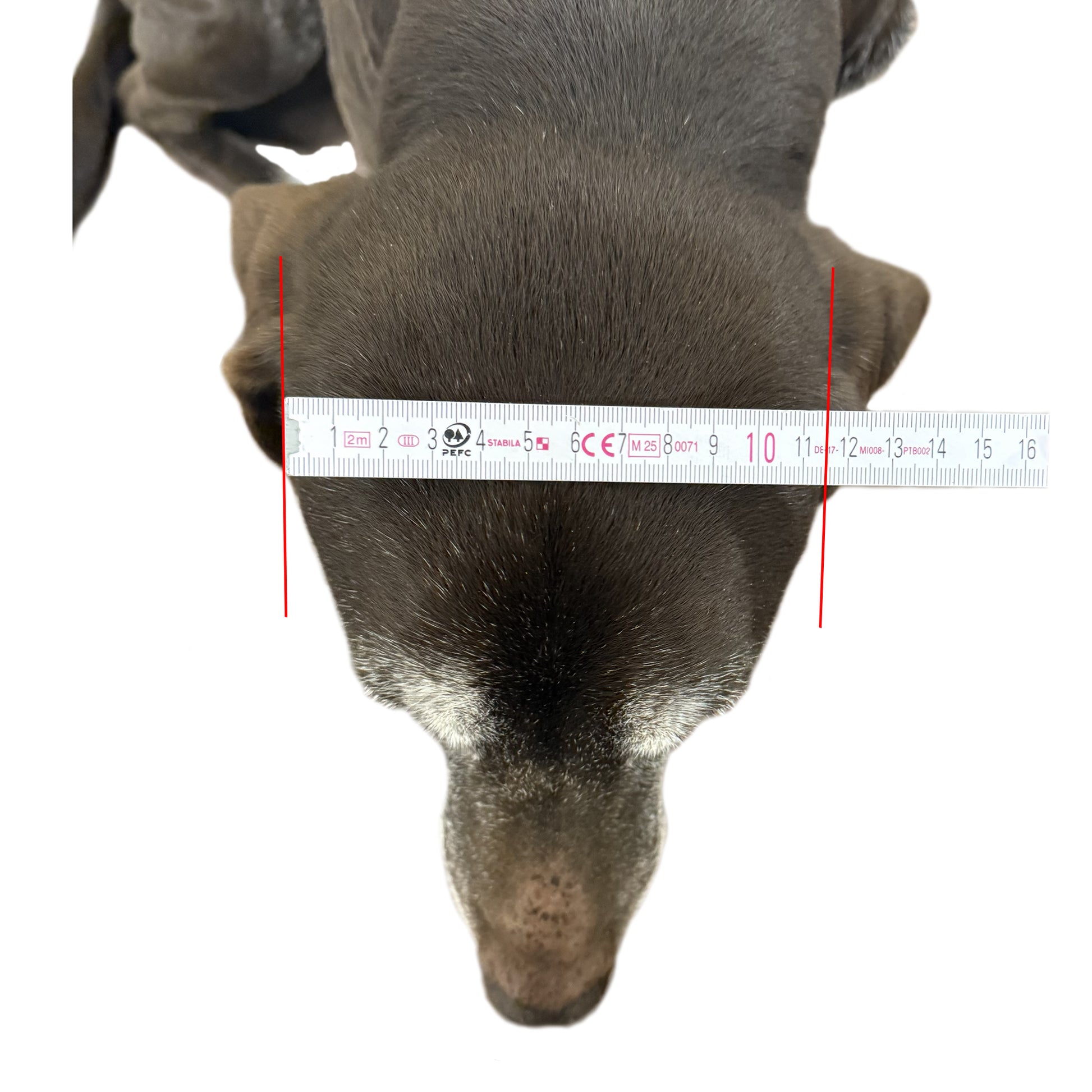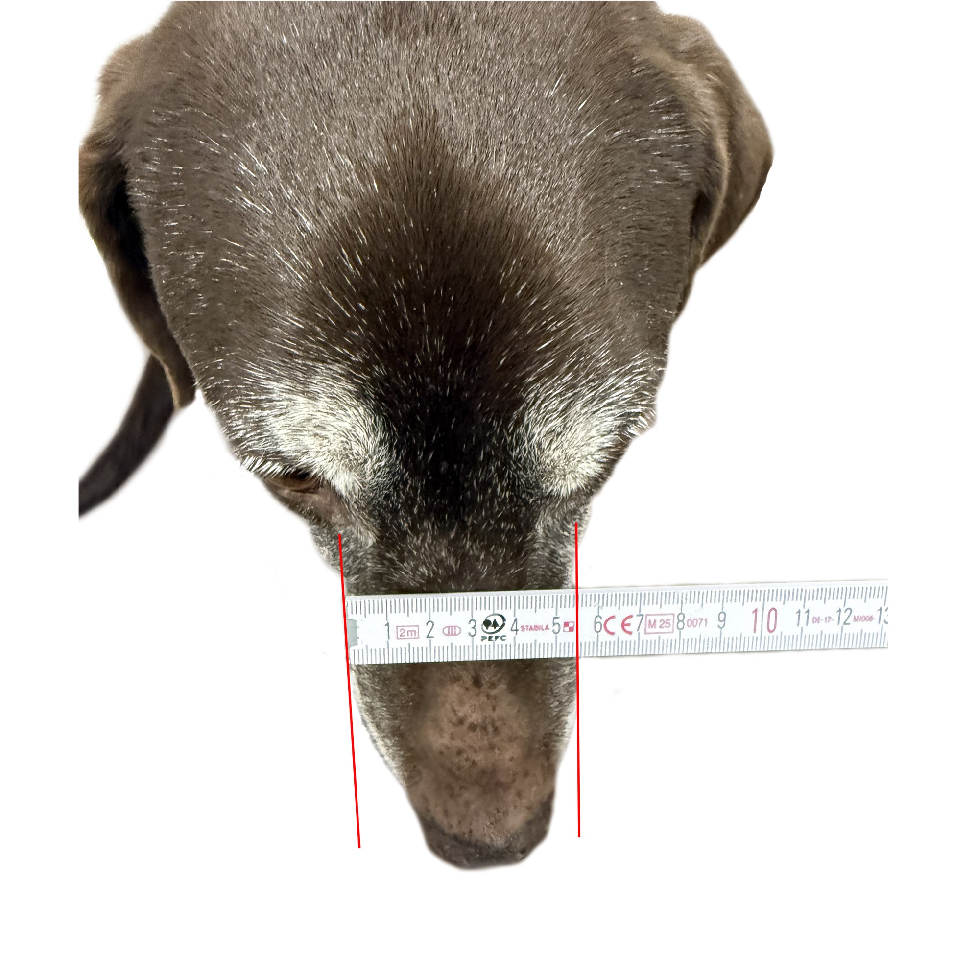 Schnauzenbreite – Messe sie, wie in Bild 3 dargestellt, an der breitesten Stelle der Schnauze.