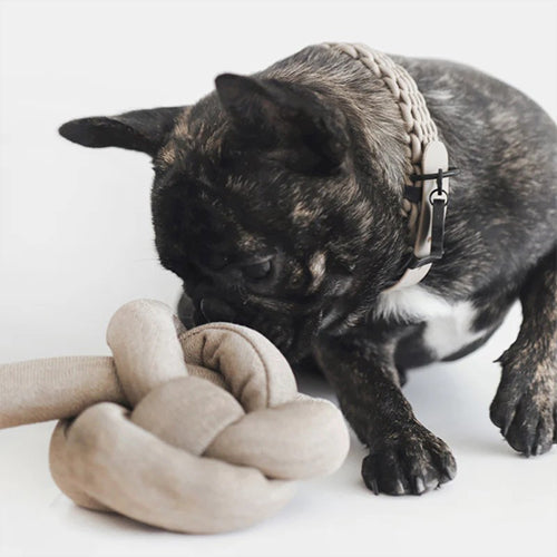 Das Strickgewebe ist mit weichem Nylon umhüllt, sanft zum Maul deines Hundes und ideal für aktive Kauer.