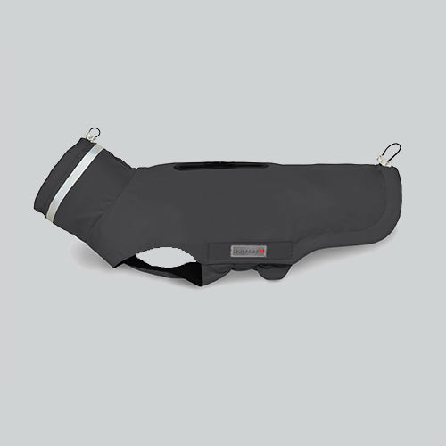 Die Outdoorjacke Modern Classic präsentiert sich als eine optisch schicke und zeitlose Hundebekleidung für die kalten und feuchten Herbst- und Wintertage. Hergestellt aus pflegeleichtem Polyester, verfügt der Mantel über ein angenehmes Innenfutter aus kuscheligem, warmen Fleece und einen reflektierenden Streifen am Hals für eine verbesserte Sichtbarkeit in der Dämmerung und Dunkelheit.