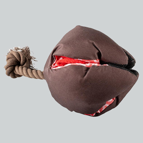 Hinweis: Beachte bitte, dass dein Hund beim Spielen niemals unbeaufsichtigt ist, da kein Spielzeug unzerstörbar ist. Regelmäßige Kontrolle auf Beschädigungen oder lose Teile ist wichtig, um Verletzungen vorzubeugen.